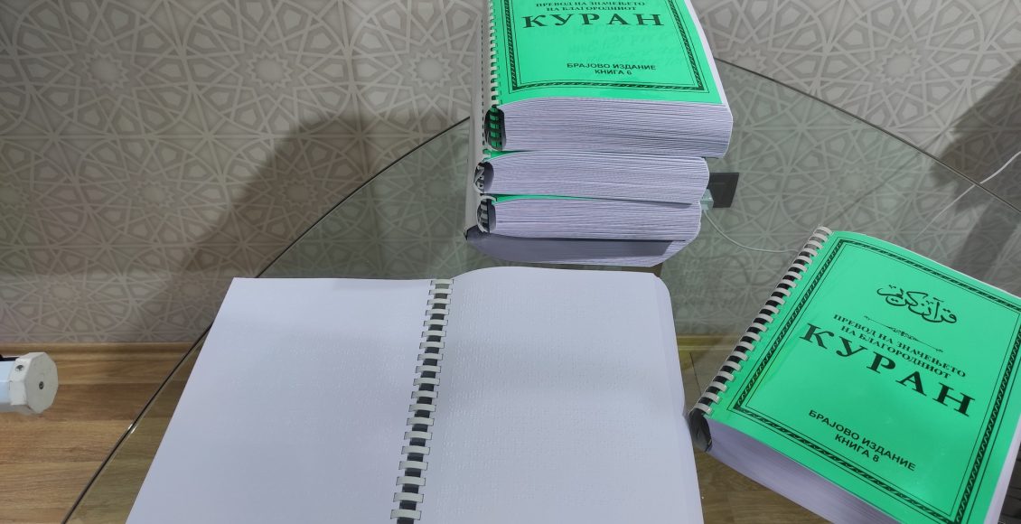 Исламската Верска Заедница обезбеди осум копии превод на значењето на Благородниот Куран на специјалната азбука за слепи лица, Брајова азбука. Го молиме севишниот Алах да ги награди сите тие што помогна и придонесоа за ова благородно дело.